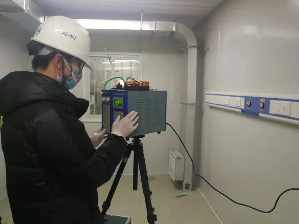 2020年初,根據(jù)市疫情防控指揮部部署,南京市公共衛(wèi)生醫(yī)療中心啟動應急擴建工程。江蘇雁藍接到環(huán)境檢測工作任務(wù)后,克服防疫物資緊張、人員調(diào)配困難等因素,在6小時內(nèi)組建完成專項工作組,10余名技術(shù)人員在現(xiàn)場連續(xù)奮戰(zhàn)4個晝夜完成擴建病區(qū)的全部檢測工作,為指揮部提供全面的檢測數(shù)據(jù)和分析結(jié)果。