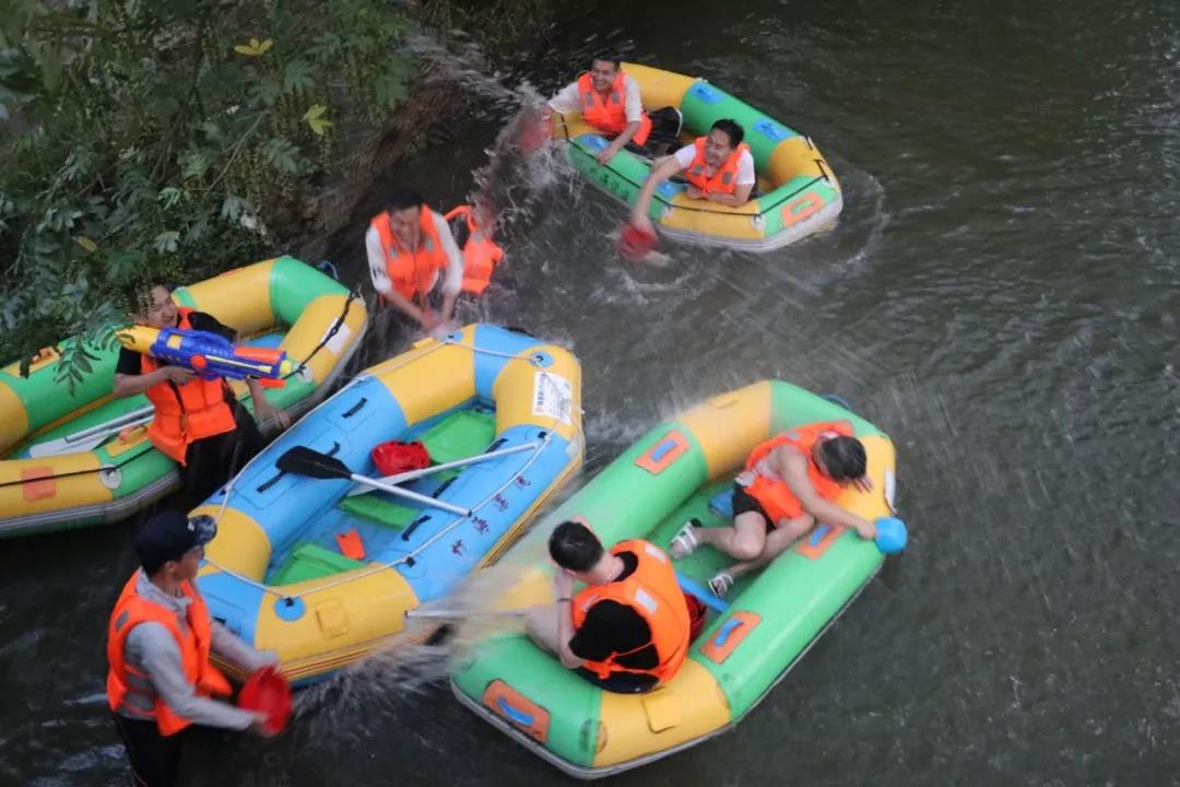 下午全體員工領好安全帽和救生衣,拿好船槳開始了竹海漂流活動,在時而湍急時而平緩的水流中漂流艇順流而下,同事們打起水戰(zhàn),在驚險刺激的漂流中品味著江南小村莊的韻味,感受到了更多的刺激和歡樂。